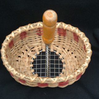 Learn to change a round based potato masher into an oval basket that is great for holding nuts and a nut cracker. This features a metal woven base instead of the more common squiggle design. Makes a great gift for the guy in your life or an older friend or family member who used these on their mashed potatoes!