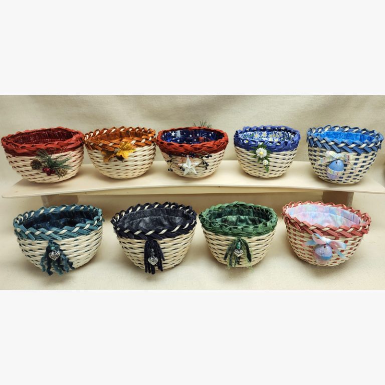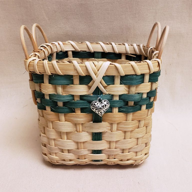 This pencil basket can also be used to hold flowers, utensils, remotes, you name it. It begins with a 3" round wooden base and twills up the entire side with this easy OVER 3 UNDER 2 twill. It is embellished with a hand made with love beaded charm. A quick, easy project that will impress!